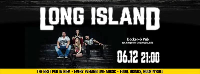 Неважливо любите ви рок чи поп музику, київський кавер-гурт Long Island змусить вас зайняти своє місце на танцполі! Це гурт, який викликає мурашки у ваших мурашок! Міць, драйв, енергетика і вібрації живої музики не залишають байдужим жодного слухача!