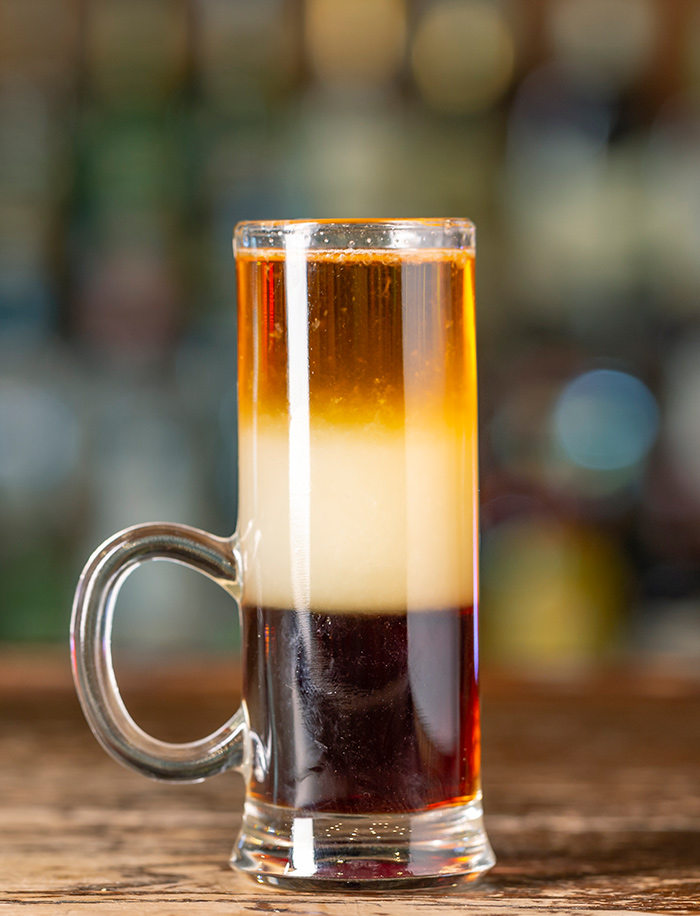 Crème de Cafe liqueur, Crème de Cassis liqueur, cream, cinnamon