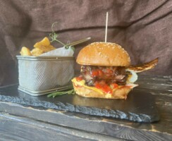 Ribs Burger з ребром свинини, соусом чімі-чурі, сиром чедер. Подається з картоплею фрі або картоплею по по-селянськи та соусом вершковий Чеддер