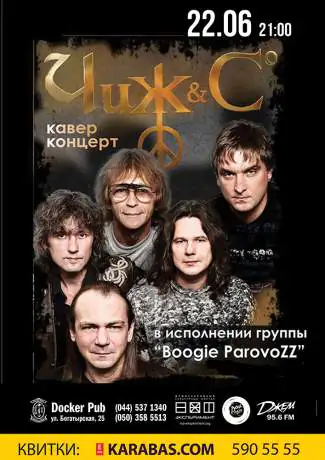 22 июня лучшие и любимые песни группы “ЧИЖ и Ко” в Докер пабе. На сцене – любимая многими группа “Boogie Parovozz” вместе с Денисом Давыдовым. Команда признана лучшим трибьют-проектом на “Чиж и Ко”.