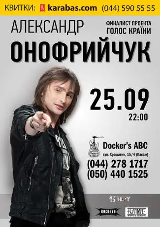 Олександр Онофрійчук – фіналіст проекту Голос країни. Нова історія. Переможець Крим Мюзік Фест 2012. Виступав на розігріві у легендарних Scorpions у Львові та Київі.