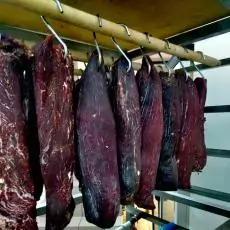 Презентуємо фірмове в’ялене м’ясо власного виробництва – брезола, бастурма, копа, індичка, папероні, салямі та інші смаколики приготовлені власними ручками нашого супер шеф-кухаря! Процес правду скажемо трохи клопіткий, але кінцевий результат того вартий!