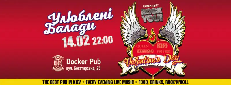 Святкова програма на Святого Валентина в Docker-G Pub